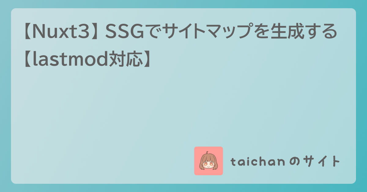 【Nuxt3】SSGでサイトマップを生成する【lastmod対応】Nuxt3とContentプラグインを使っている環境でlastmodを含めたサイトマップをSSGで生成する方法を解説しています。タグ: 雑記技術NuxtSSGSEO2024年8月2日